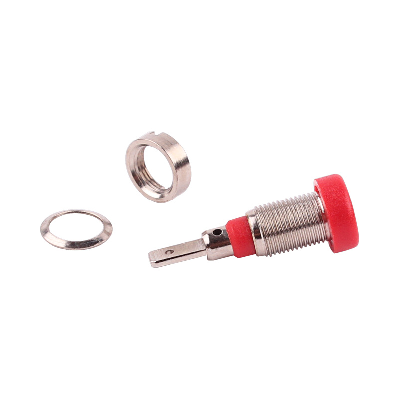 純銅鍍鎳嵌入式2mm輸入端子,采用金屬螺帽直接在面板進行固定,耐高溫尼龍塑料,尾端建議使用插片連接。