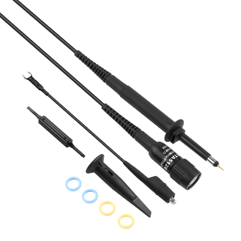 100MHz示波器高壓探頭 - 采用低電阻鍍金測針,卡扣式旋轉接地導線,為了安全采用100倍固定衰減。探頭主體由高強度塑料制成,卡扣式旋轉接地導線,在所有彎折受力處采用軟塑料保證電纜的使用壽命。